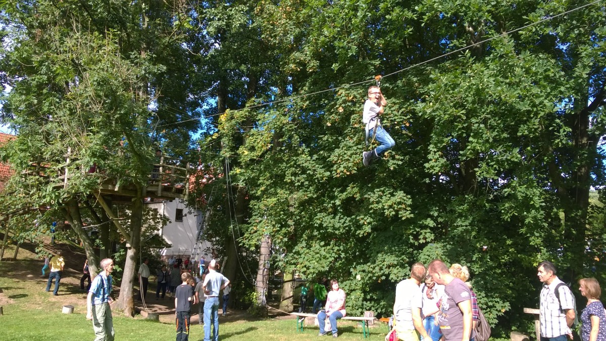 Am 01.09.2019 war das bisher letzte Holzmühlenfest, das größte alkoholfreie Volksfest weit und breit. 46 Helfer kamen zusammen, um den vielen Kindern im Seilgarten an den Seilbahnen und an den Kletterstationen behilflich zu sein.